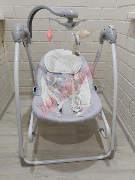 Электрокачели - удобное устройство 2 в 1, которое объединяет электронные качели и шезлонг. Можно использовать с рождения и пока малыш не будет весить более 12 кг. Имеет несколько наклонов спинки. Для удобства и безопасности предусмотрены мягкий подголовник и пятиточечные ремни безопасности.